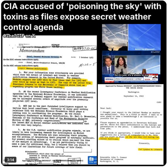 機密解除されたCIA文書には、ハリケーンやモンスーンを化学物質で操作する研究の記録が残されています。元アメリカ空軍の環境専門家・クリステン・メガン氏は、基地内で通常では説明のつかない大量のバリウムやアルミニウムの調達記録を発見し、上官に報告した結果、精神科検査を命じられたと証言しています。